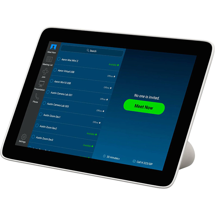 Use the included Poly TC8 Controller to handle the meeting. The 8-in capacitive touchscreen tablet that acts as a dedicated touch control panel. TC8 has the Poly Video App preinstalled, which supports connection to multiple cloud services using the standard H.323 and SIP protocols. TC8 eliminates the need for a laptop or PC. Everything you need for a professional 4K UHD video conferencing experience is there with Studio X50 and TC8.